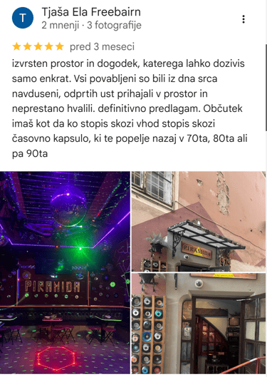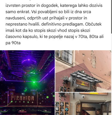 Nostalgia Club Piramida je posvečen glasbi, videu in hifi opremi prejšnjega stoletja. Ponujamo edinstveno doživetje za vse ljubitelje nostalgije.